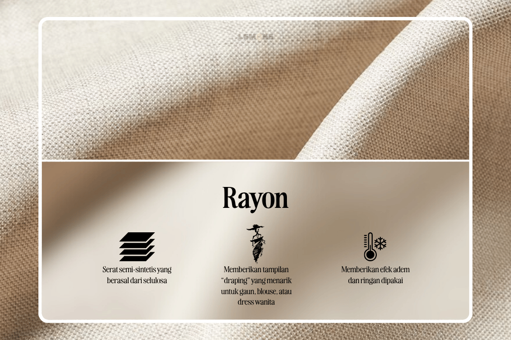 Teksturnya yang halus, jatuh, dan memberikan tampilan “draping” yang menarik untuk gaun, blouse, rok, atau dress wanita.