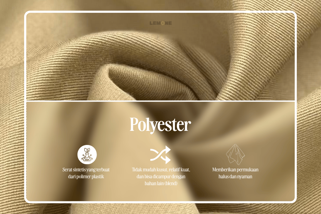 Polyester murni cenderung kurang bernapas, bisa panas bila digunakan lama di ruang terbuka.