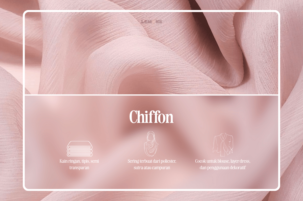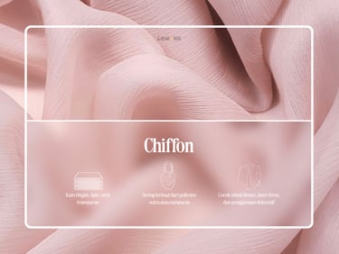 Desain dan potongan yang sesuai bahan: Misalnya chiffon cocok untuk layer atau potongan flowy; tidak cocok untuk desain yang sangat ketat.