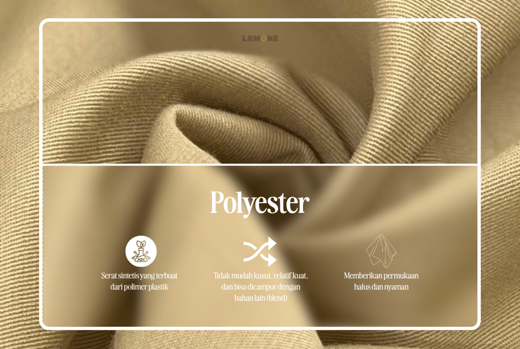 Bahan ini juga kini digunakan di banyak pakaian olahraga, athleisure, dan streetwear. Jadi, kalau kamu masih menganggap polyester “tidak premium”, mungkin ini saatnya merevisi cara pandang.