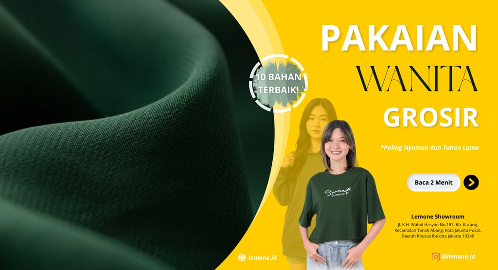 Dalam dunia pakaian wanita grosir, salah satu faktor yang paling menentukan keberhasilan produk di pasar adalah material bahan. Bahan yang nyaman, bernapas, dan awet akan menciptakan kepuasan pelanggan, mengurangi retur, dan meningkatkan citra brand Anda. Sebagai tim Lemone, kami ingin berbagi wawasan mendalam tentang 10 jenis bahan yang umum digunakan dalam produksi pakaian wanita grosir—beserta karakteristik, keunggulan, kelemahan, serta cara kami memastikan kualitas bahan agar tetap unggul di pasar nasional (termasuk Jabodetabek).