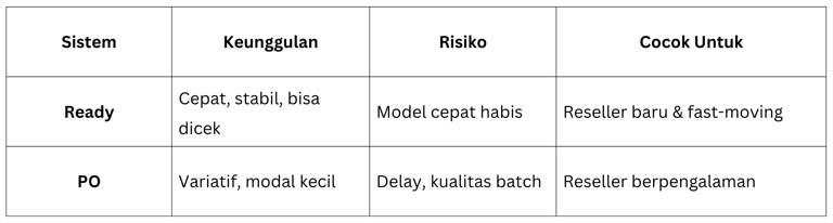 Tidak heran, banyak reseller akhirnya kembali ke ready setelah mencoba PO.