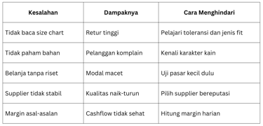 Tabel Ringkas: 5 Kesalahan Reseller Baru & Cara Menghindarinya